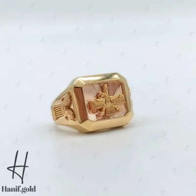 شکوه بی‌زمان در انگشتر طلای مردانه سکه پهلوی آیینه‌ای از حنیف گلد در گالری حنیف گلد، ما هنر ساخت طلا