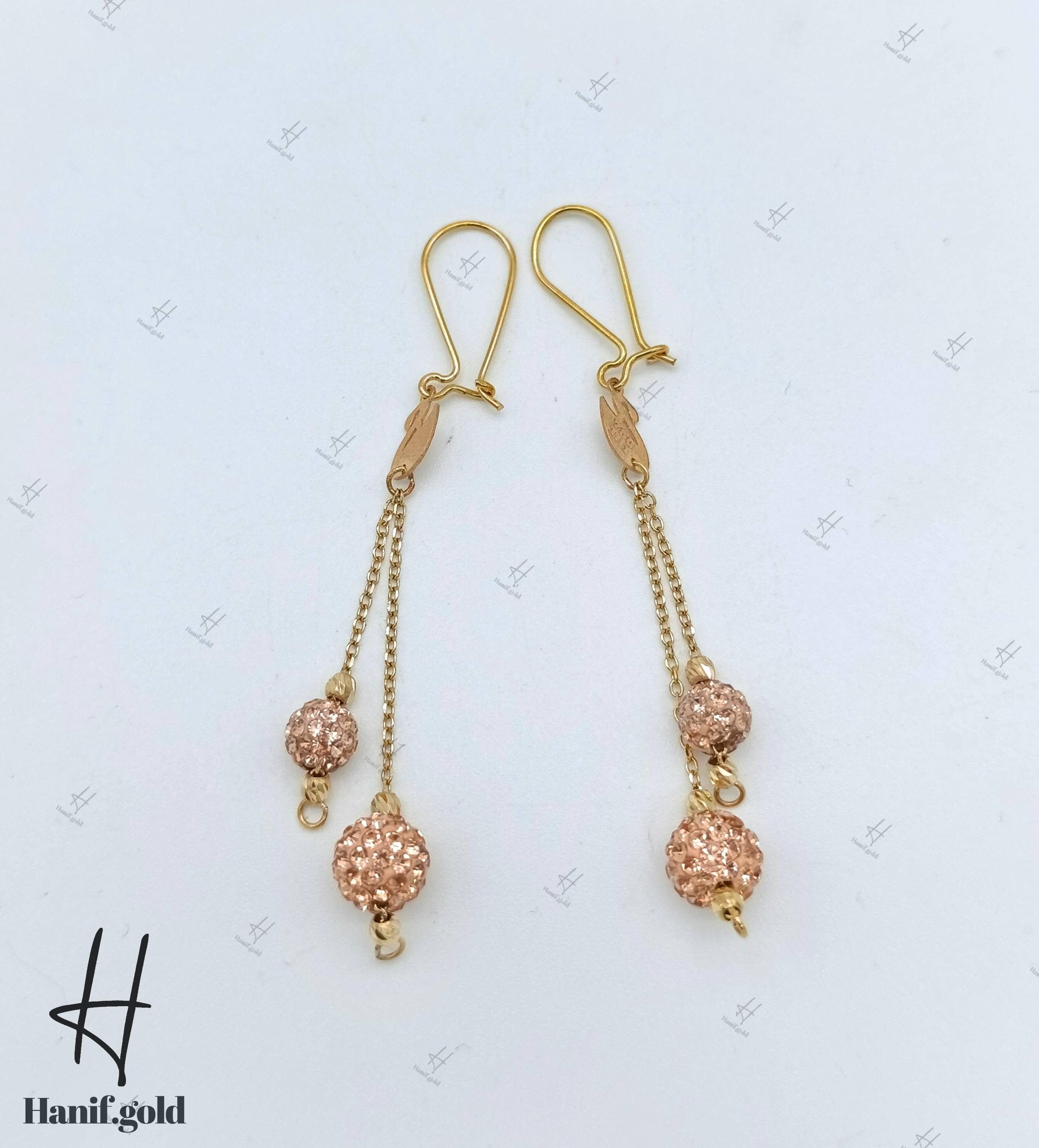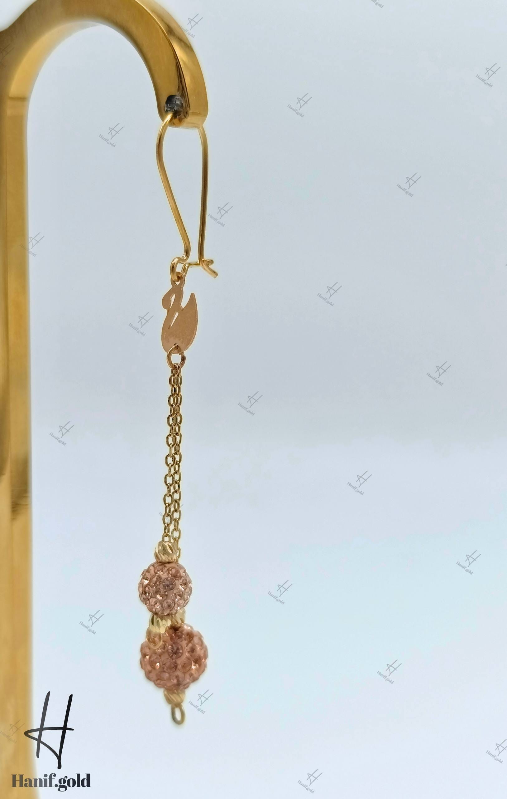 گوشواره طلا با توپ رز گلد نگین دار( گوشواره ویانا)
