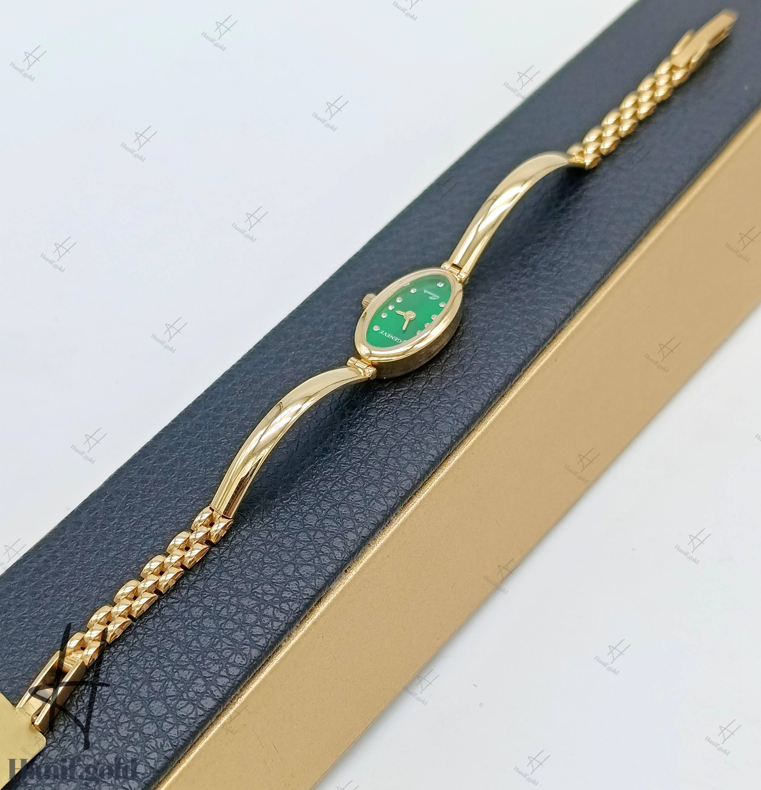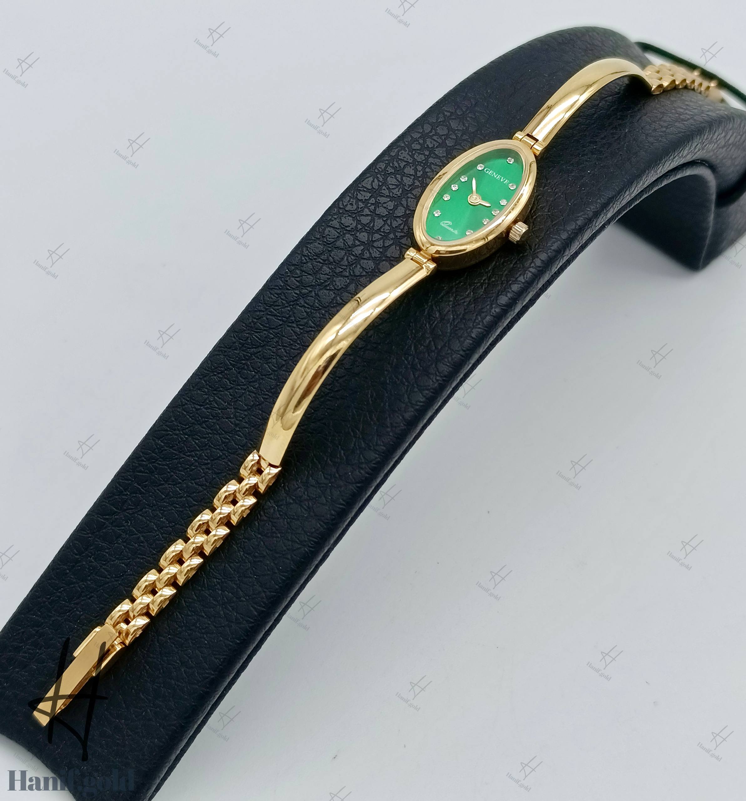 ساعت طلای صفحه بیضی سبز(GENEVE WATCH)