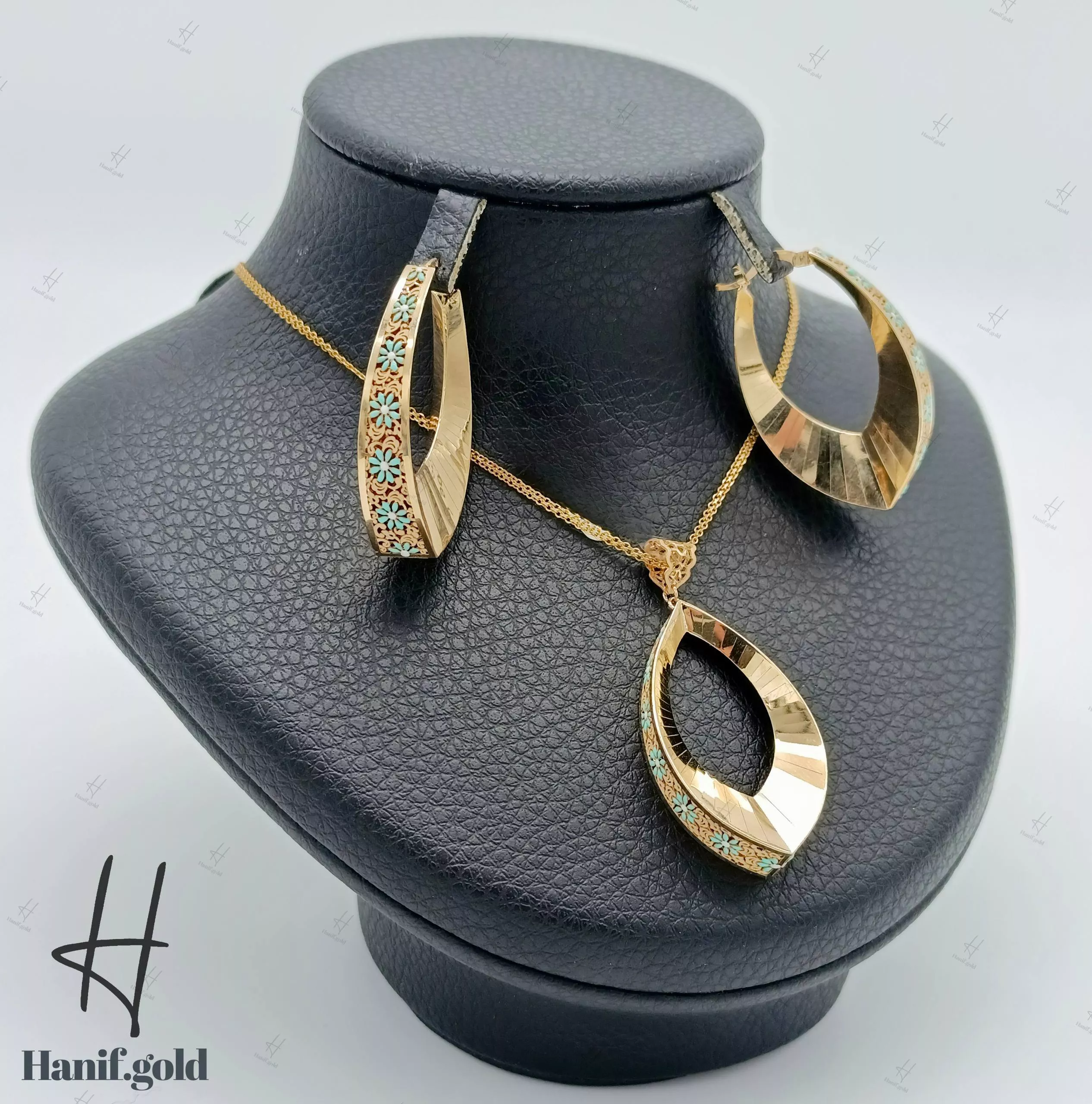 نیم ست طلای طرح اشک آیینهای با مینای سبز و آبی(کالکشن سیمرغ)