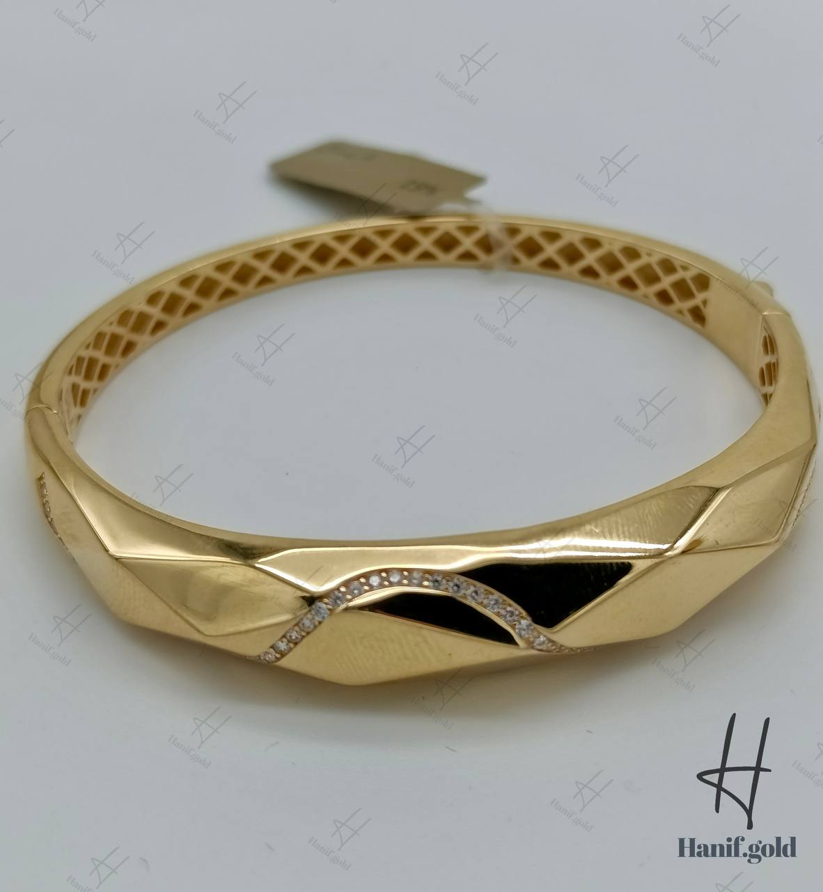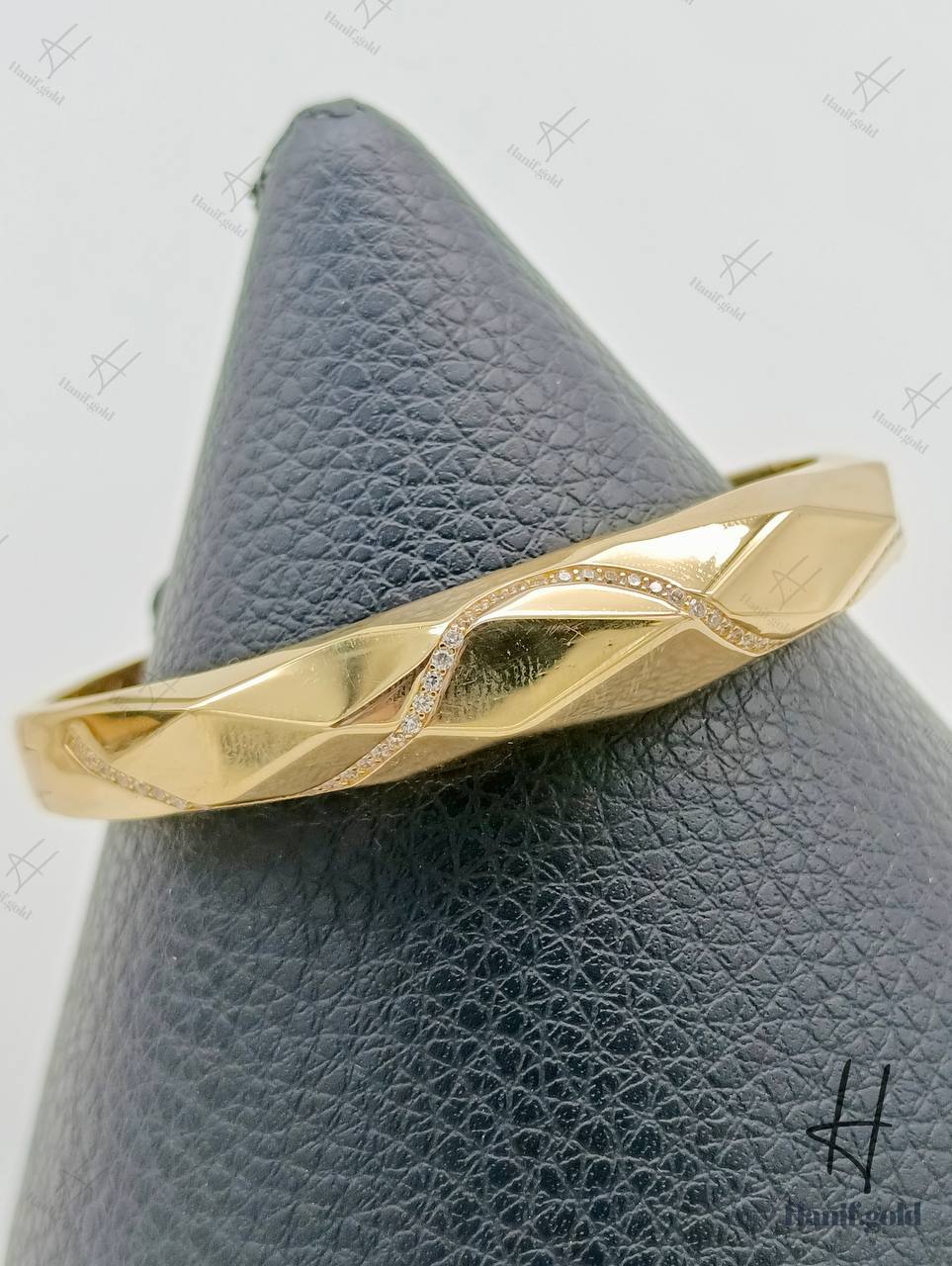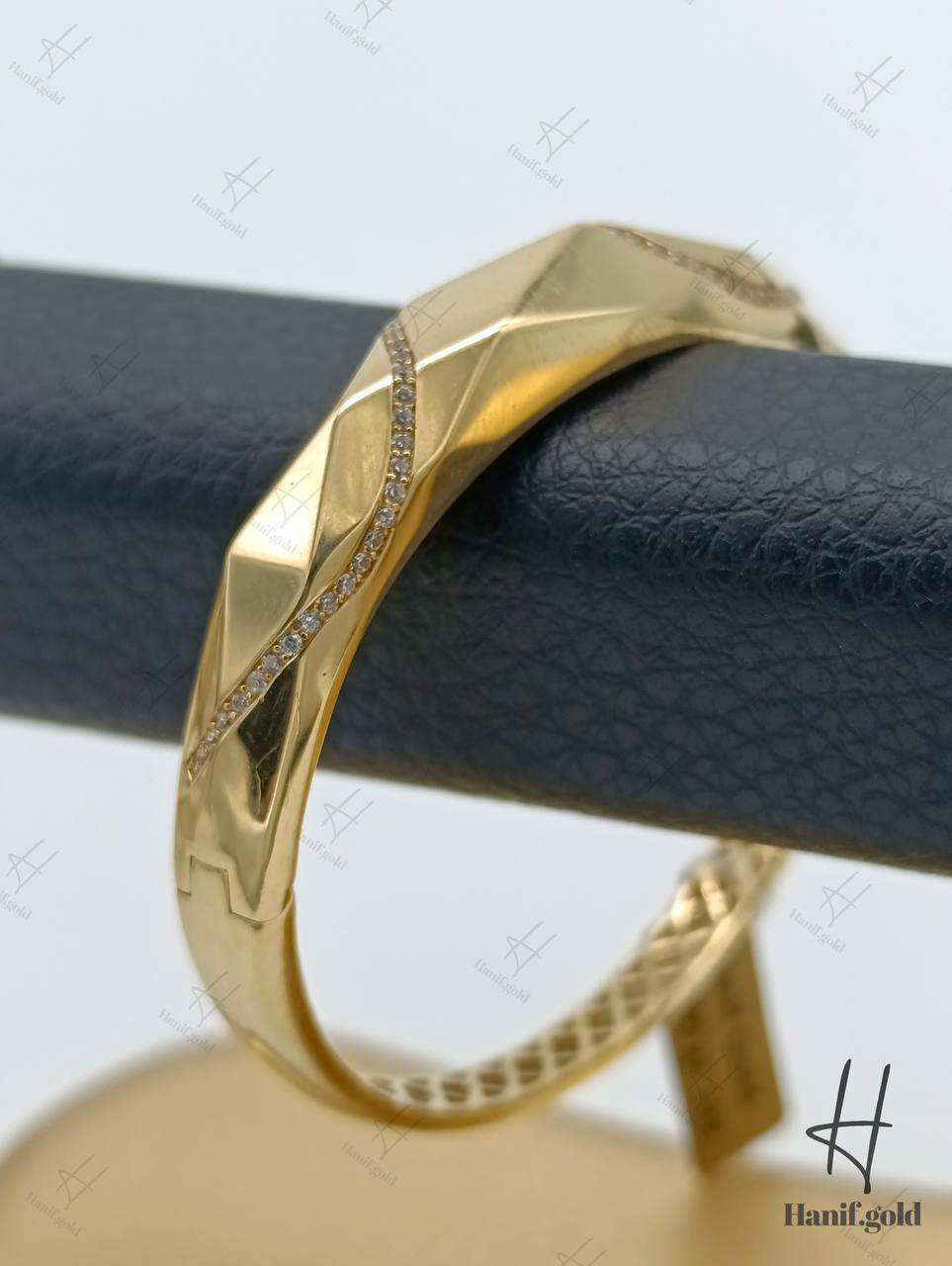 دستبند طلای النگویی زرد آیینهای طرح کادنزا نگین دار ( دستبند کریستال)