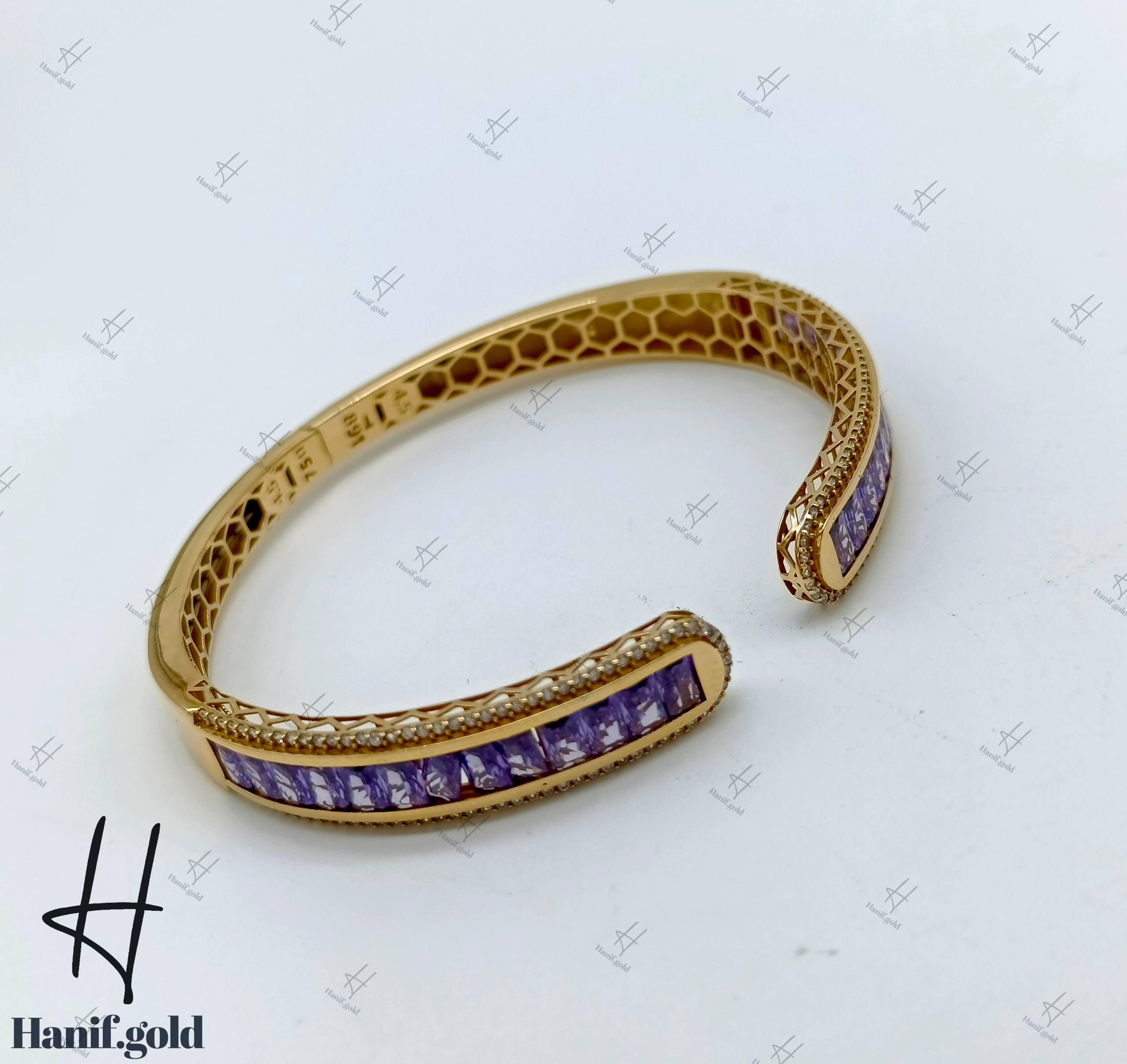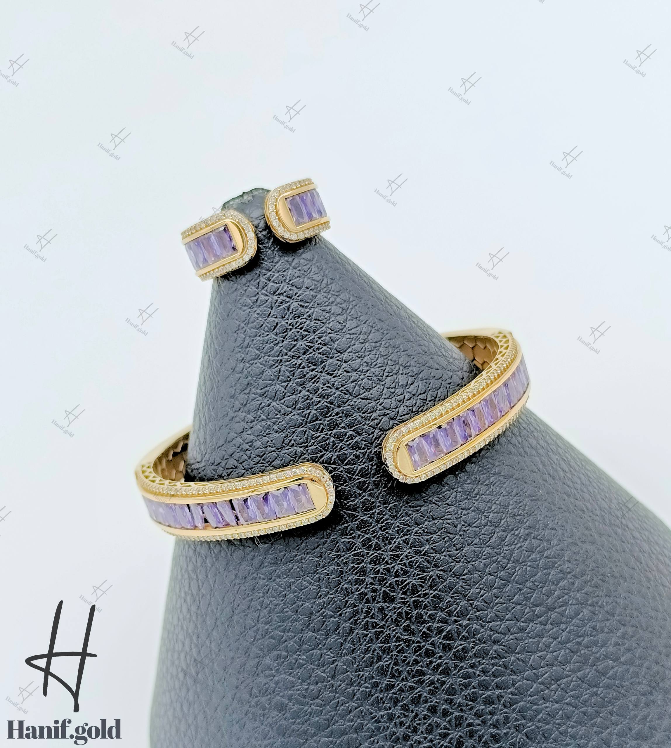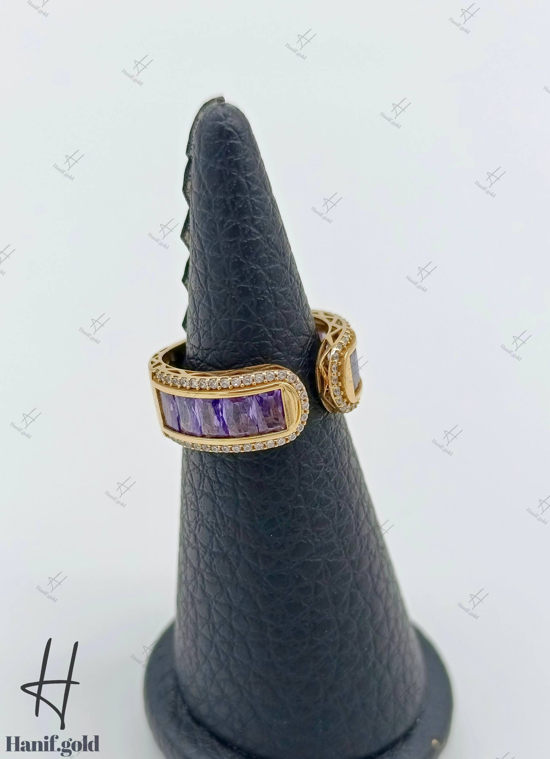 دستبند انگشتر طلای نگین بنفش مکعب (زریاس)