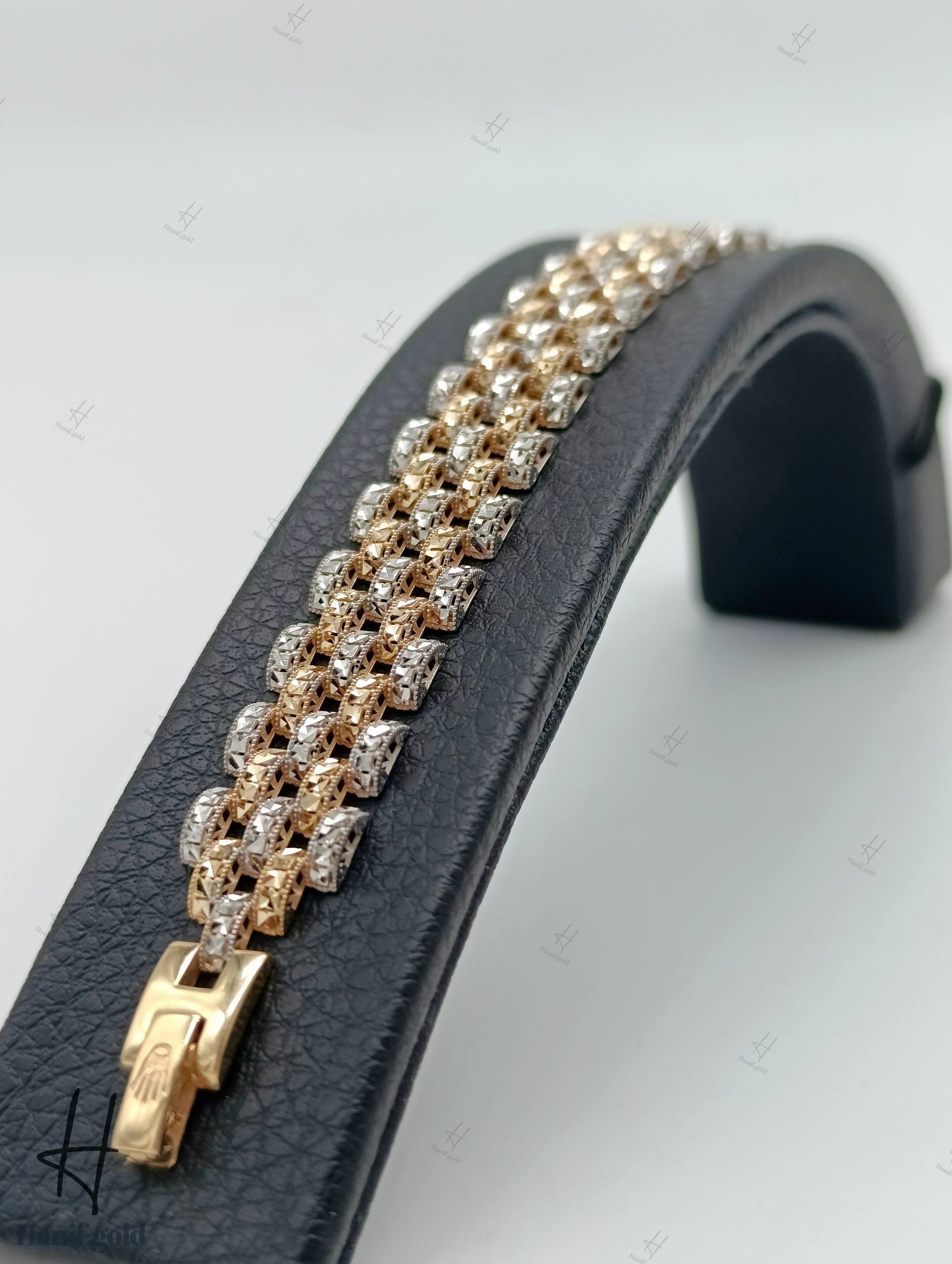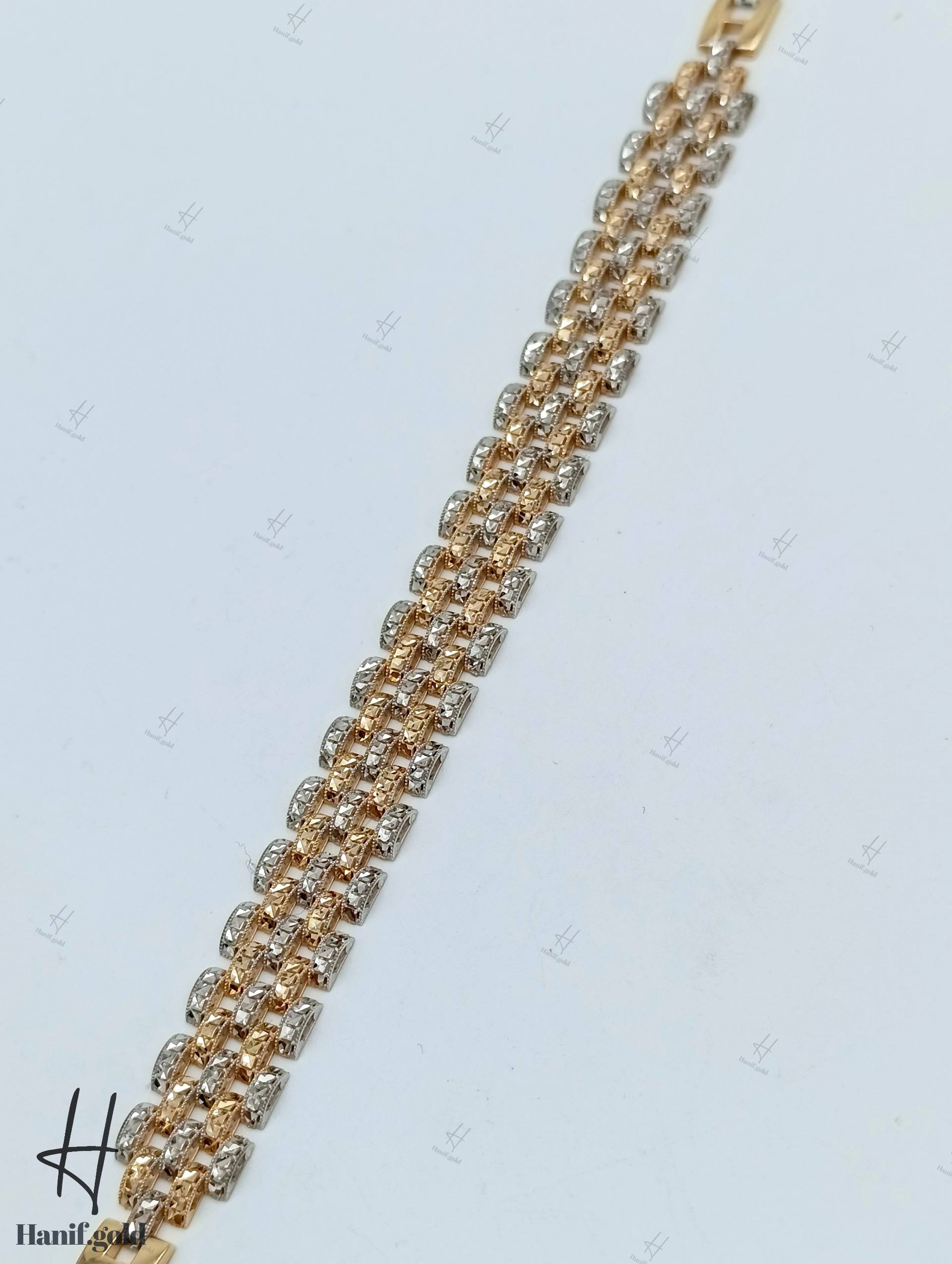 دستبند طلای لخت رولکس تراش،۵ رج سفید و زرد