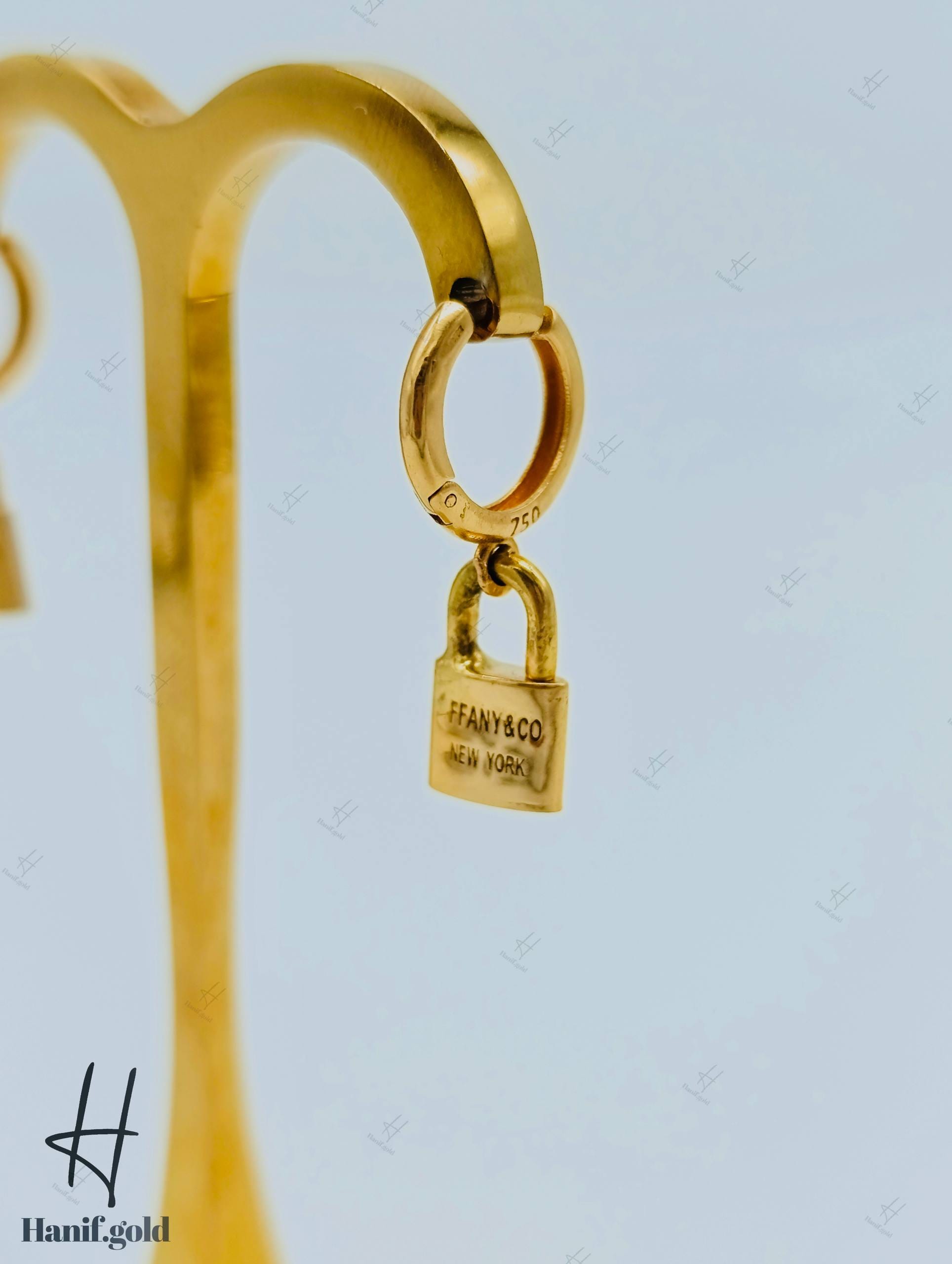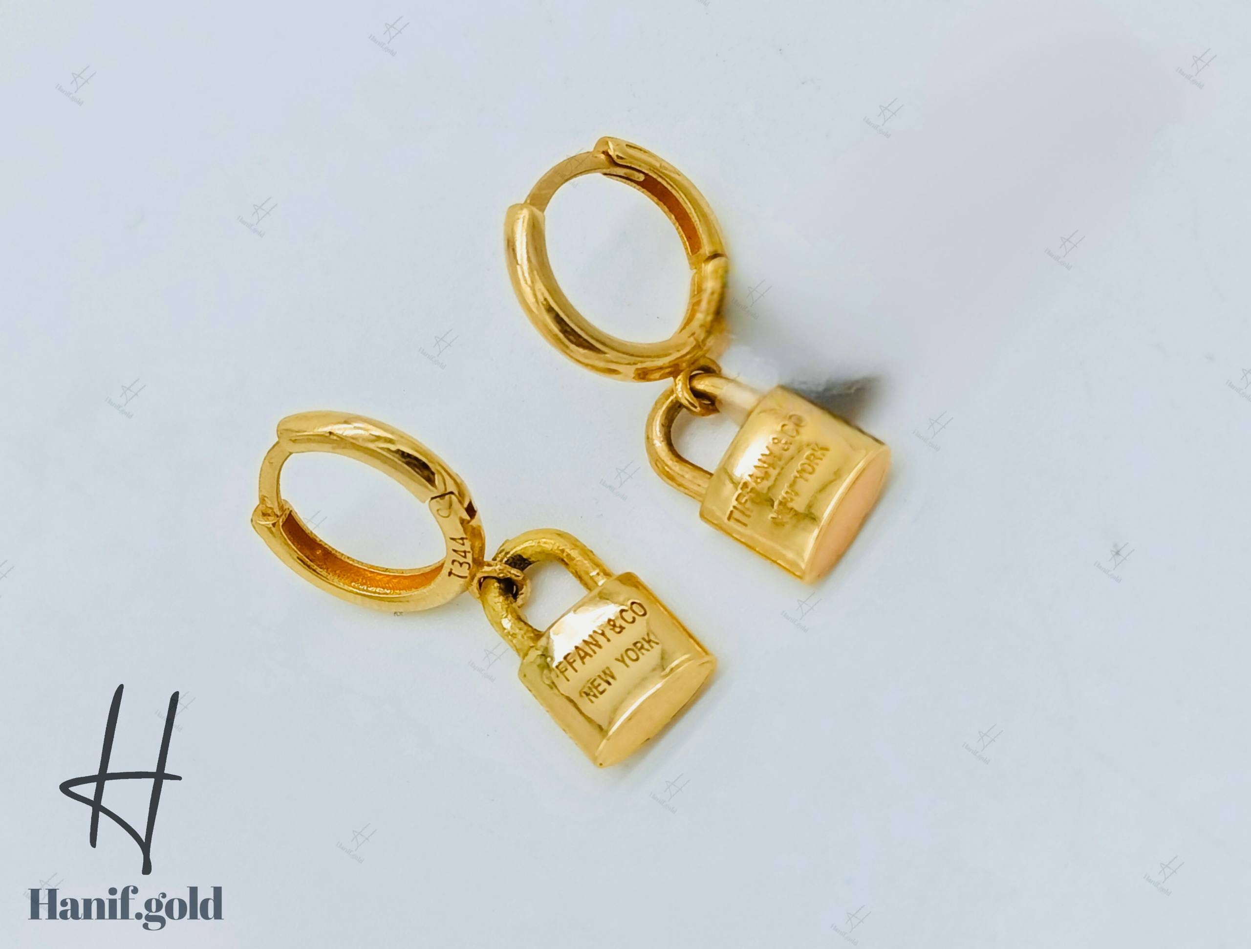 گوشواره طلای زرد آیینهای قفل تیفانی آویز