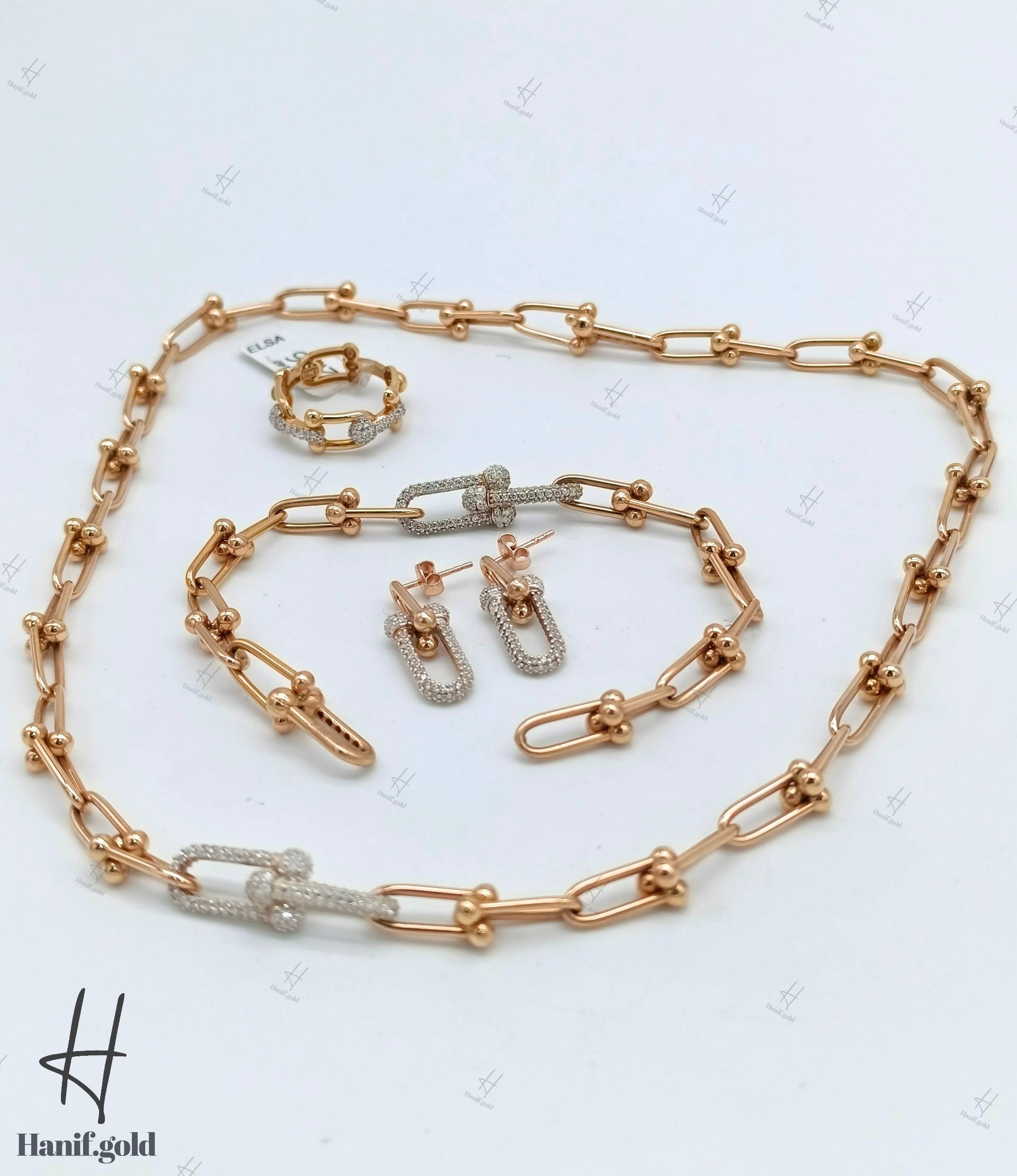 سرویس طلای رزگلد تیفانی نگین دار (نیلی گلد)