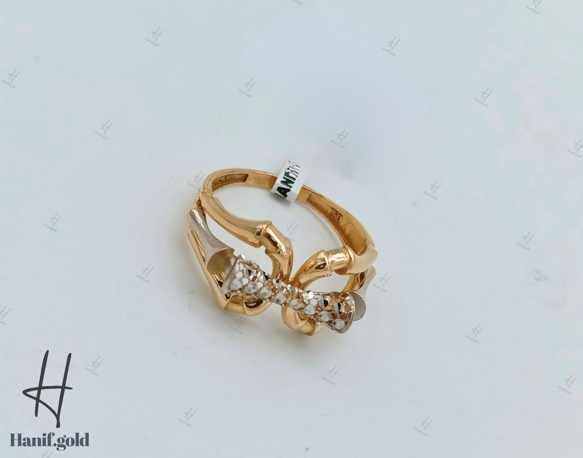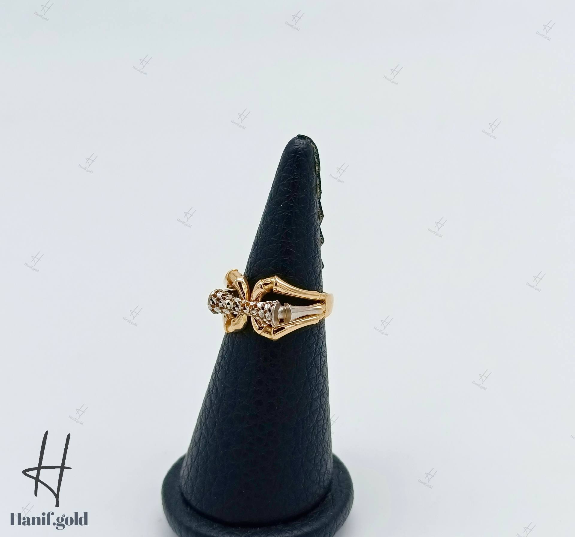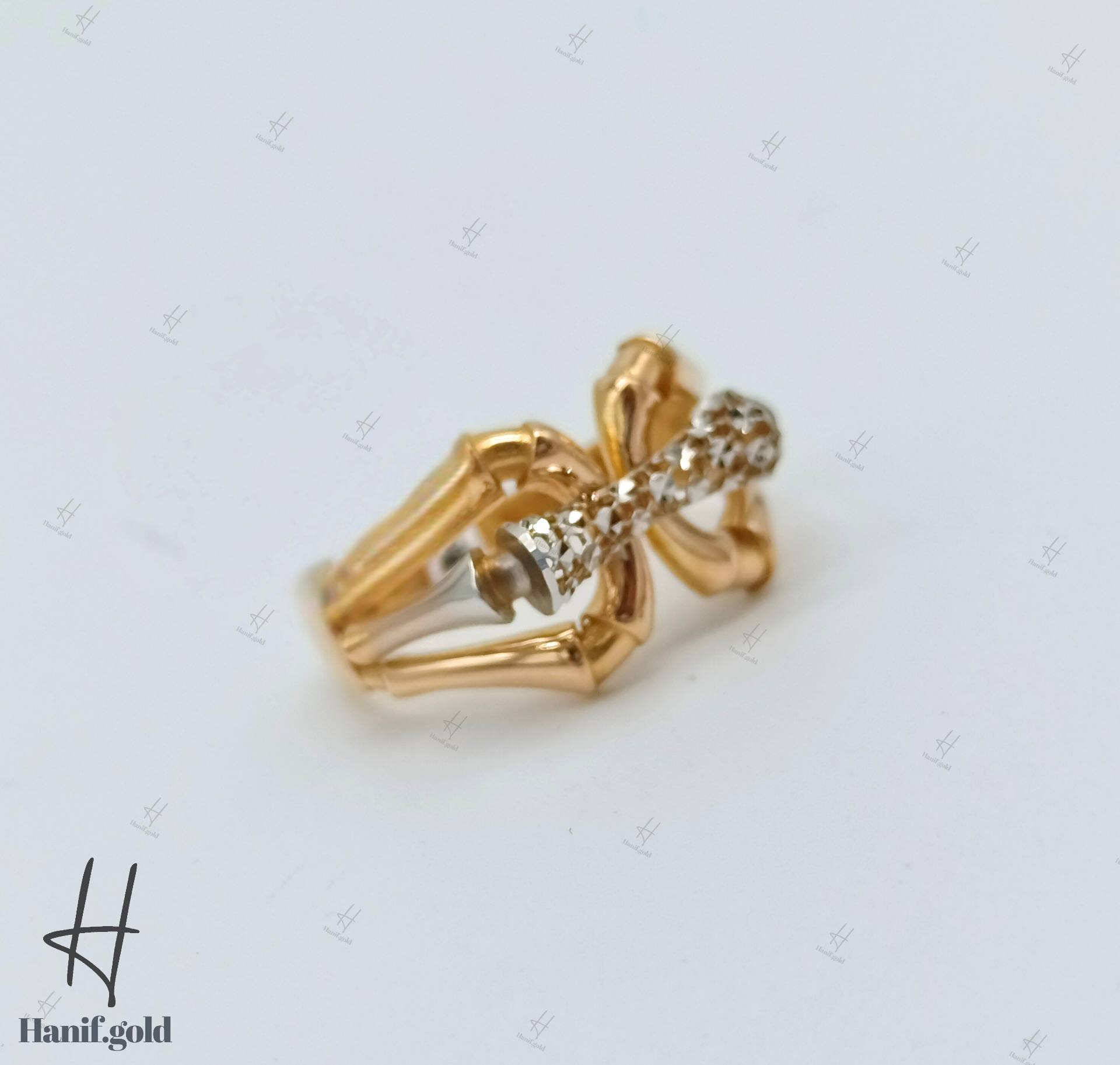 انگشتر طلای دو رنگ زرد وسفید تراش طرح پاپیون (سرو تراش)