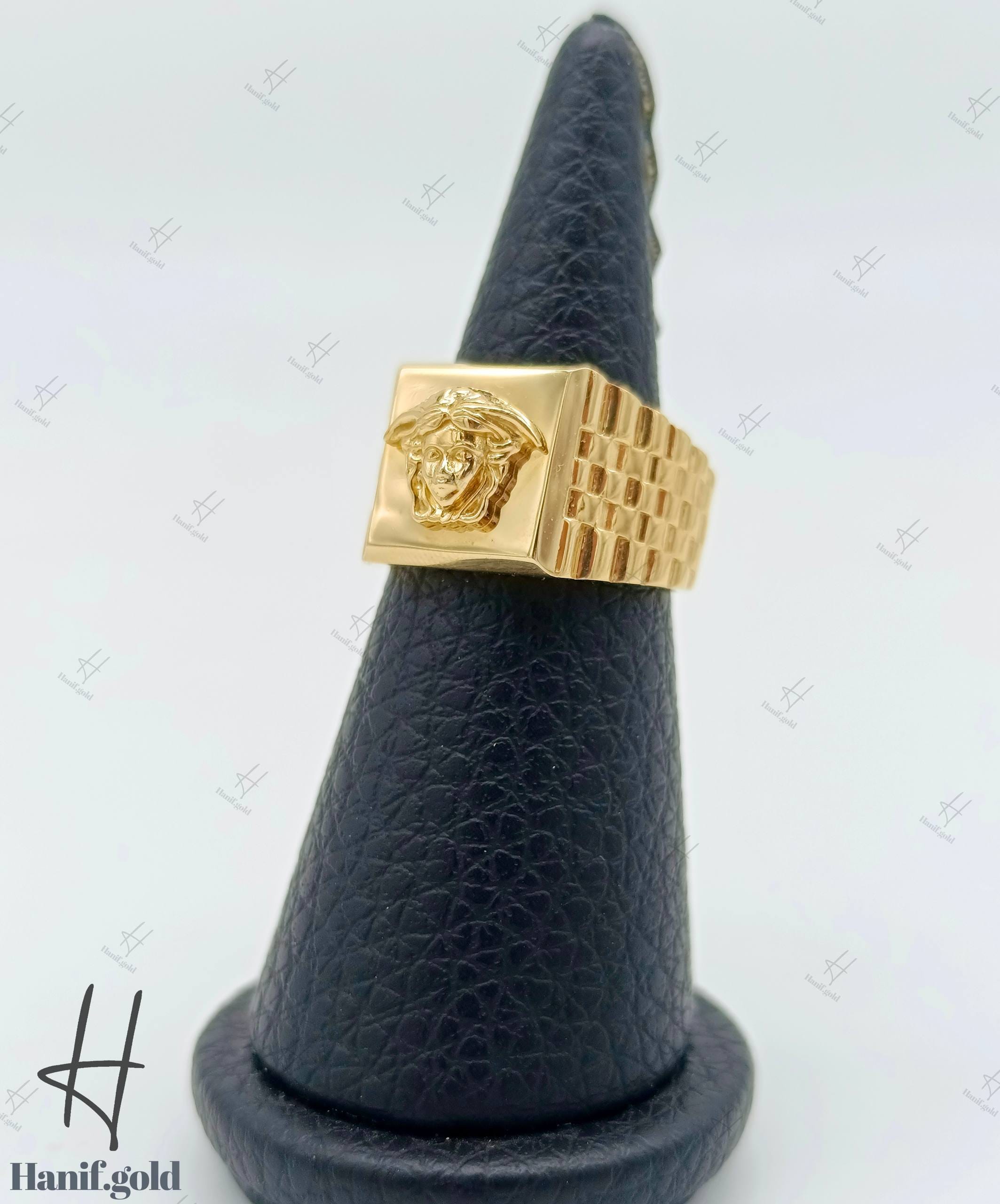 انگشتر طلای مردانه زرد آیینهای ورساچه ،رکاب طرح رولکس